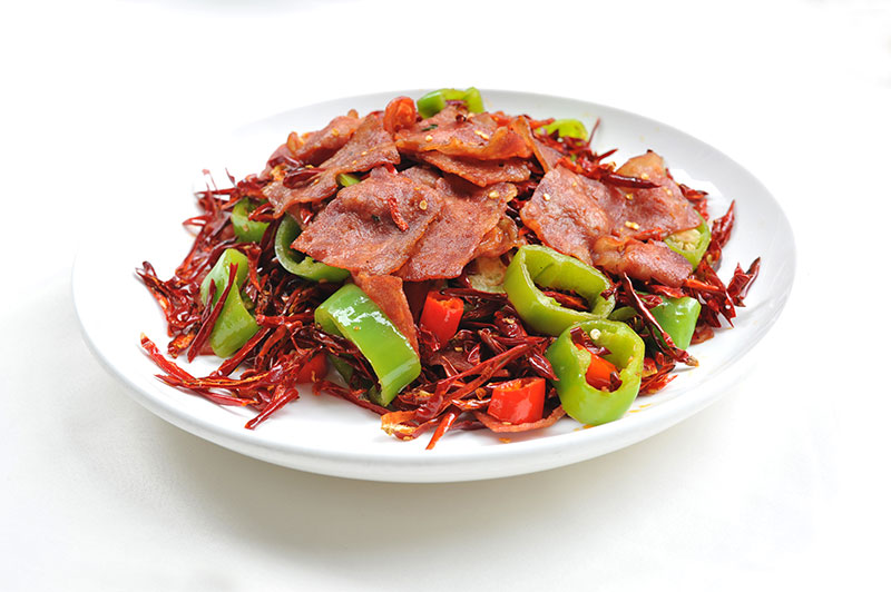 培根、青椒、豆瓣醬、調(diào)味料、干辣椒,花椒