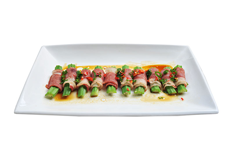 培根、秋葵、甜辣醬