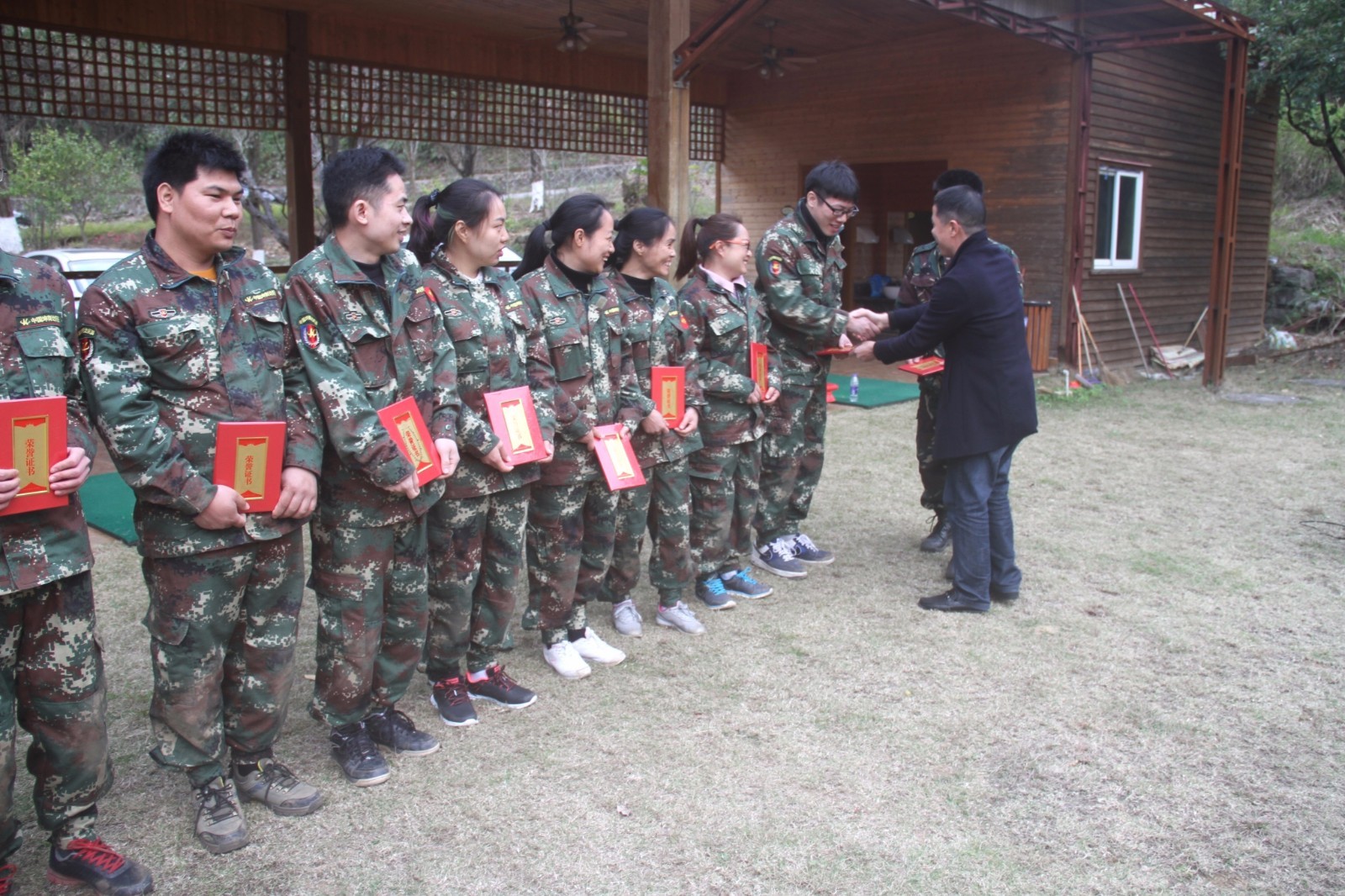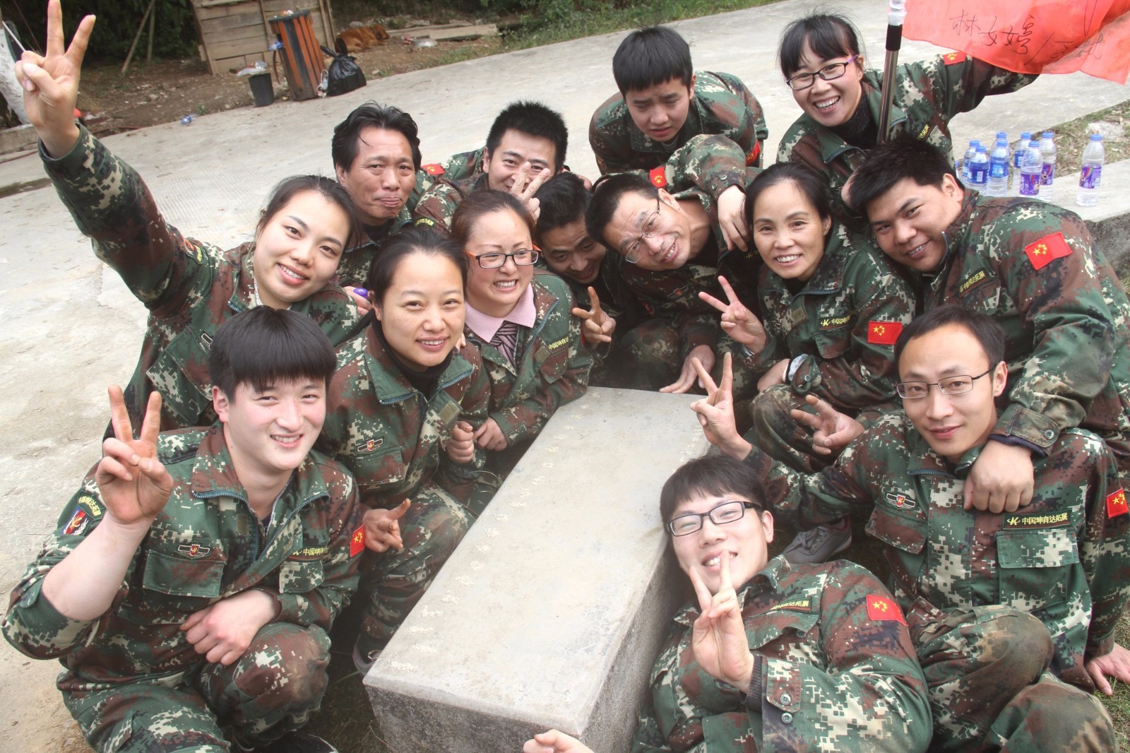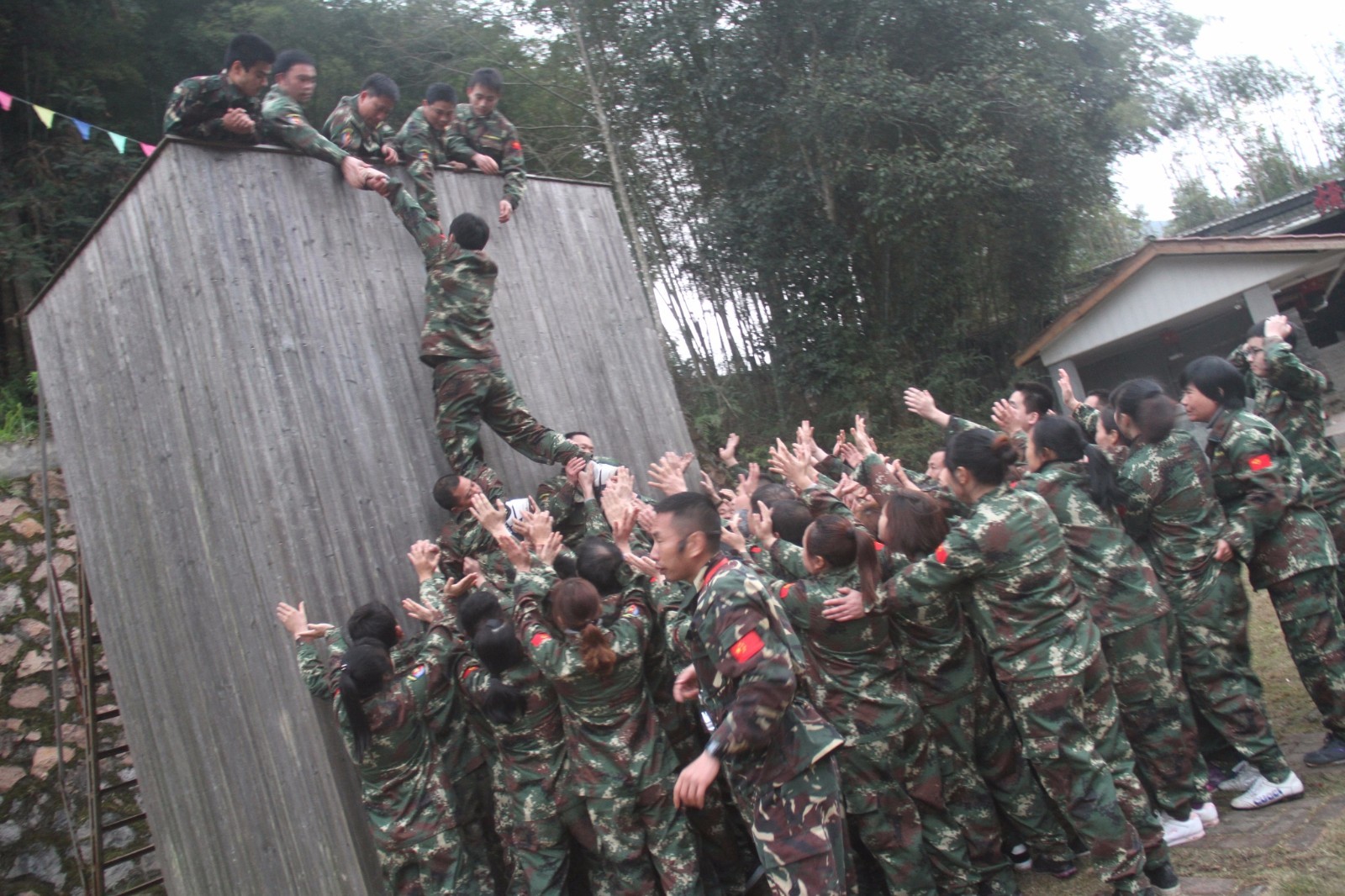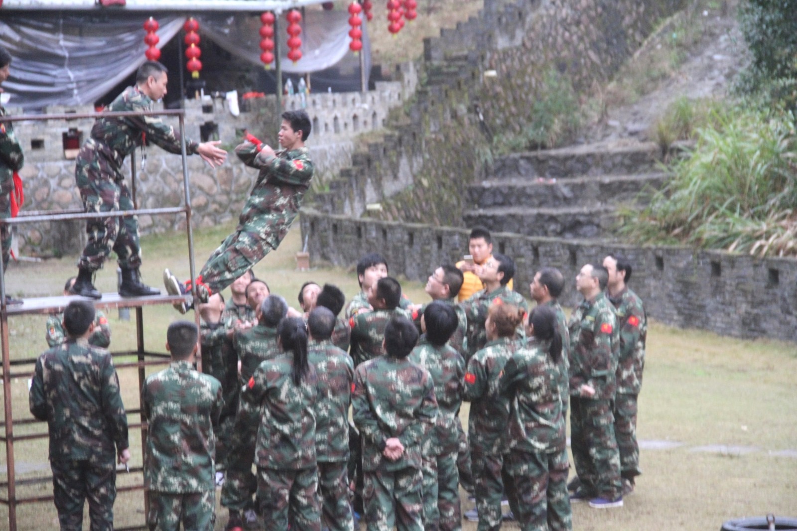 第一天團隊統(tǒng)一著裝迷彩服,進行團隊組建并建立統(tǒng)一的團隊目標。參加心情撲克牌、高空抓桿、盜夢空間、七巧板等項目。